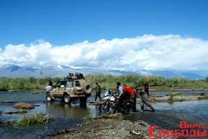 Вчера, 28 июля, пересекли границу с Монголией в районе Ташанты, сегодня прибыли в Новосибирск. Машина дошла своим ходом, но требует ремонта. Форум имею возможность прочитать только сейчас. Машина из болот была вытащена силами украинской команды и Семена. Из точки возврата на болоте выехали на заднем приводе, почти везде тащили лебедкой и 80-кой Леонида. После прохождения самого крутого подъема на обратном пути срезало зубья на главной паре заднего моста. Разобрали задний мост, убрали главную пару. Поставили передний мост, заварив сателлиты переднего дифференциала. При заезде в первую болотину срезало сварку с одной из шестерен, остался привод только на левое переднее колесо. В таком режиме удавалось двигаться только по сухой и ровной поверхности. В результате почти весь маршрут по погранзаставы был пройден на веревке за 80-кой, на крутых подъемах на лебедке и сцепке 80-ки и Сафаря Семена. В район погранзаставы читинцы за ночь привезли оба редуктора, мы приняли решение установить только задний редуктор, т.к. передний требовал регулировки. Регулировку решили сделать в Чите. За ночь все 5 машин доехали до Читы, где с утра стали устранять неисправности. Работы закончили вечером, приняли решение выдвигаться 4 машинами в ускоренном режиме через Монголию. После Улан-Батора оторвало от рамы чашку пружины и амортизатора. Заварили. В составе 4 машин доехали до озера Хубсугул. Украинская команда предложила задержаться в районе озера 1-2 дня и ехать вместе, но я принял решение двигаться дальше самостоятельно. Леонид предложил выделить одну машину из своей группы для сопровождения. Но разрывать их группу не имело смысла, мы согласовали точный маршрут, по которому будем двигаться с информированием по SMS о точках прохождения маршрута. Единственная проблема - очень мало населенных пунктов в Монголии, где есть сотовая связь. Дня через два - три украинская команда должна выйти из Монголии.