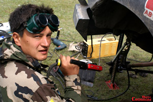 А у остающихся поломка обнаруживается уже. На машине №25 Теодора Резвого несколько трещин в раме вокруг места крепления рулевого механизма. Чтобы заварить, нужно разобрать левое крыло и подкрылок или снять кузов с рамы, в наших условиях это невозможно. Придумываем метод – выгибаем электроды в виде буквы «U» и реквизируем зеркальце из Юлиной косметички. Поначалу непривычно, но вскоре я и Женя Стоянов приноравливаемся класть плохонький шов практически вслепую, так как зеркальце очень быстро покрывается налетом и каплями шлака. Плохо ли хорошо ли, но заваренная тогда рама ездит до сих пор, хотя по-хорошему нашу работу дома следовало переделать. Ставим на место гидроусилитель, провозились с ремонтом весь день, уже пять вечера. Женя Шальнев уехал днем, было жаль расставаться. Мы уже привыкли видеть в колонне белый «Прадо», а вечера у костра без этого экипажа, кажется, уже не будут такими душевными.