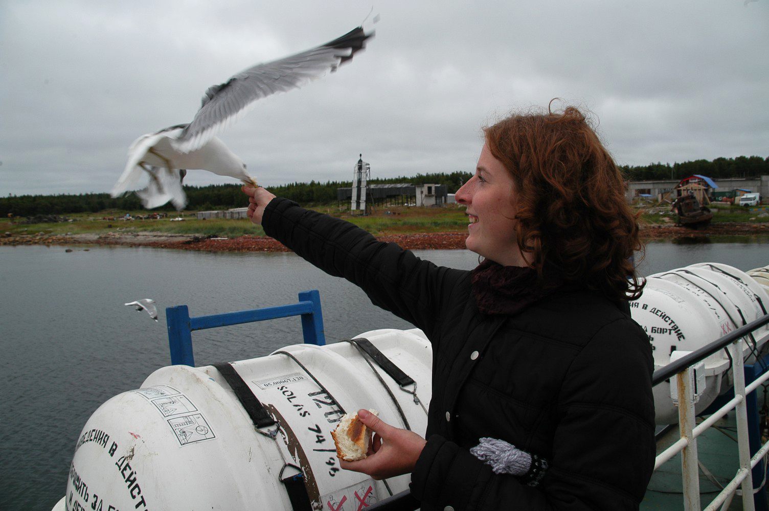С этого момента начинается наше возвращение. Рано утром мы выехали обратно в Кемь. Оттуда уже следующим утром, оставив мотоцикл в гараже, поплыли на Соловецкие острова пароходом, который весь путь преследовали уже прикормленные огромные северные чайки. Попав на Соловки, взяли напрокат пару велосипедов, вооружились картой и поехали изучать остров. Но выбрали мы изначально самую длинную дорогу, причем под горку, так что, добравшись до православной церквушки, мы не имели никакого желания и воодушевления кататься по Соловкам дальше. К тому же день выдался очень жаркий, и вся мошкара просто облипала со всех сторон. Вернувшись к центру, разбили палатку и начали готовить гречку с тушенкой, которую я, к своему стыду, пробовала впервые. Провели весь вечер за неторопливой беседой, я выпила пару бутылочек пива и к полуночи мы уже видели 7-й сон.