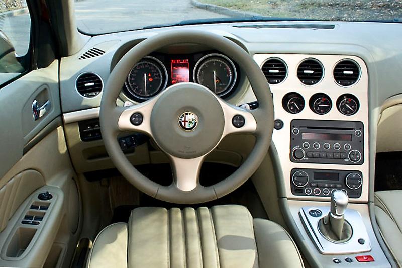 Помню, как в прошлом году я тестировал ее «сестрицу» Alfa Spider, и, признаюсь честно, изящный седан мне куда больше по нраву, чем пышные формы Spider. Между тем, «фамильный» злобный прищур фар-глаз никуда не делся, так что принадлежность к славному племени угадает даже ребенок. Любой, кто хоть раз сидел за рулем Alfa Romeo последних лет, немедленно почувствует себя внутри, как дома. Великолепные приборы, утопленные в паре внушительных «колодцев», развернутая к водителю приборная панель, пухлый бублик руля с лепестками переключения режимов КПП и жестковатые кресла... Здесь есть все, что так ценят любители красивых не только внешне машин. Вот! Моя рука сама тянется вставить забавный пухленький ключик в прорезь на панели. Потом простое давление пальцем на кнопку «старт/стоп», и рядная четверка пробуждается. Нет, окрестности не содрогаются от рева двигателя, ну, кому это нужно? Видишь ли, автомобили нынче стали настолько «цивилизованными», что даже «Alfa» лишь чуть слышно урчит на «холостых», при этом работа двигателя определяется скорее по тахометру, нежели на слух.