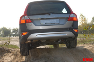 При потере сцепления колеса с дорогой, мощность передается на колеса с лучшим сцеплением. В чем мы и поспешили убедиться. При переезде препятствия для проверки способности автомобиля преодолевать диагональное вывешивание, заднее колесо повисало в воздухе в 30 см от дороги, но автомобили невозмутимо продолжали двигаться вперед.